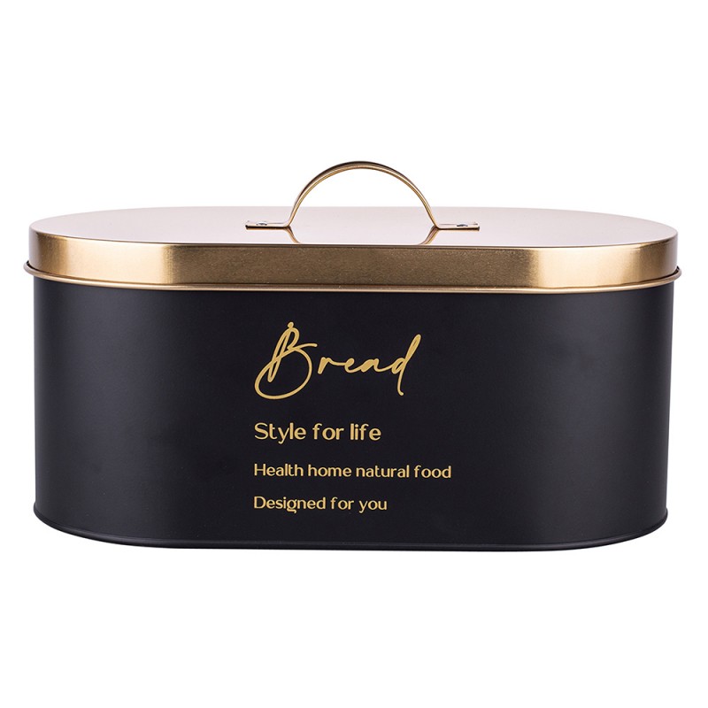 Altom Design kutija za kruh crna sa zlatnim poklopcem 34x18x15 cm – 020401753