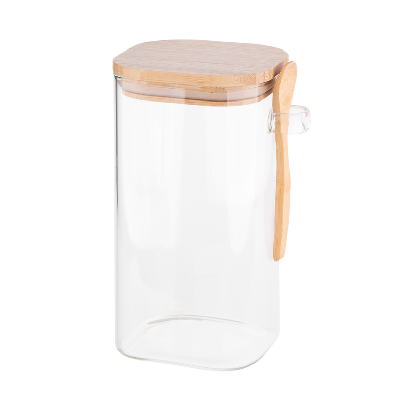 Altom Design BOROSILIKAT KVADRATNI SPREMNIK 1200ML S POKLOPCEM OD BAMBUSA I ŽLICOM ( 0203018433 )