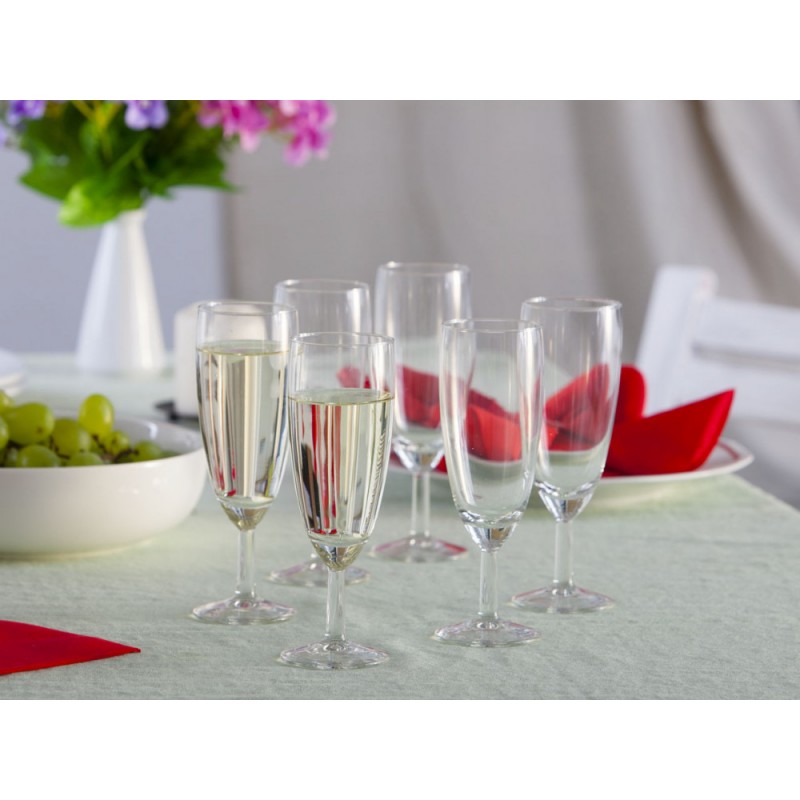 KOMPLET OD 6 čaša za šampanjac Dimenzije čaše:visina – 16 cm,kapacitet – 150 ml