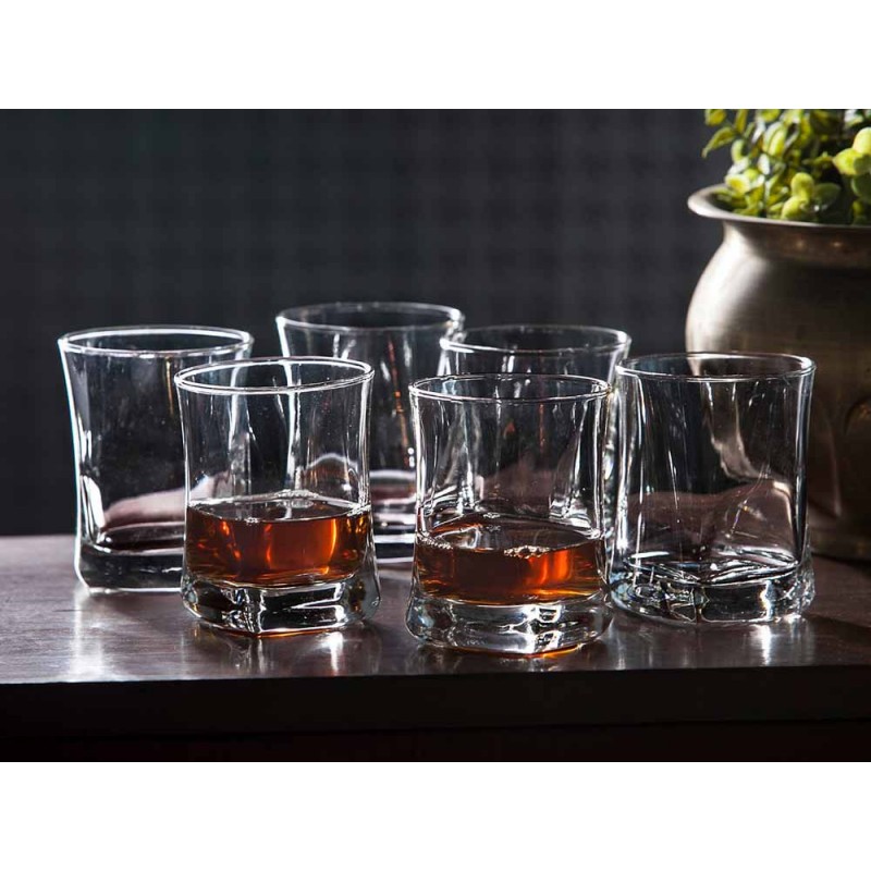 Dimenzije čaša za viski:visina: 10 cm,kapacitet: 280 ml   Elegantan, bezvremenski oblik čaša omogućuje im da se podudaraju s klasičnim i modernim ukrasima  stola   Čaše možete prati u perilici posuđa