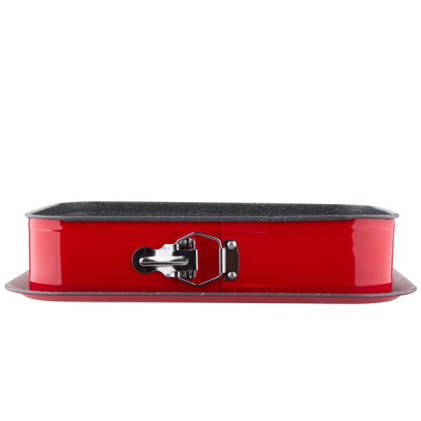 · Lim za pečenje kolača · Vrlo je lako održavati čistoću · Okrugli kalup pravilno održavan, Služit će vam dugi niz godina (ne koristite oštre predmete koji bi mogli ogrebati premaz posude s oprugom) · Zbog materijala koji se koriste za izradu kalupa (čelika), nemojte ga stavljati u mikrovalnu pećnicu (metal reflektira valove, možete oštetiti i kalup i mikrovalnu pećnicu) · Da biste dugo uživali u svojstvima okrugle posude s oprugom, ne izlažite kalup naglim promjenama temperature (npr. ne stavljajte ga u zagrijanu pećnicu odmah nakon vađenja iz hladnjaka)