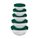 Staklene zdjele s poklopcima idealne za skladištenje prehrambenih proizvoda Set:1 x zdjela 9 cm, 150 ml 1 x zdjela 10,5 cm, 200 ml 1 x zdjela 13 cm, 350 ml 1 x zdjela 14 cm, 500 ml 1 x zdjela 17 cm, 900 ml