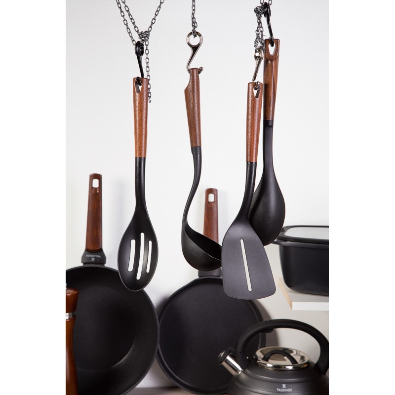 Posuđe iz linije VALDINOX Prime odlikuju se zanimljivom, urezanom vanjskom strukturom i impresivnim ručkama s izgledom egzotičnog drva. Kolekcija kombinira klasiku i modernost, pobudivši zanimljivost i znatiželju na prvi pogled. To uključuje ne samo lonce i tave, već i čajnik, posudu za pečenje i najlonski kuhinjski alat s drvenim ručkama. Čvrsto i izdržljivo kuhinjsko posuđe VALDINOX jamči zadovoljstvo tijekom kuhanja. Prženje ima dodatnu snagu zahvaljujući modernoj tehnologiji. Višeslojni švicarski ILAG Basic premaz učinkovito sprječava lijepljenje i zagaranje posuđa i olakšava pranje posuđa.