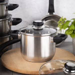 Emilio lonci od nehrđajućeg čelika – elegancija i trajnost na vašem kuhinjskom putu. Emilio lonci od nehrđajućeg čelika kombinacija su trajnosti, funkcionalnosti i elegancije u jednom. Izrađene od visokokvalitetnog nehrđajućeg čelika, izrađene su kako bi se suočile i s najzahtjevnijim kulinarskim izazovima. Bez obzira jeste li iskusni kuhar ili tek započinjete svoju avanturu kuhanjem – naši lonci bit će vaš nezamjenjiv partner u kuhinji i pomoći će vam da postignete izvrsne rezultate. · Napravljene posude izrađena od najkvalitetnijeg nehrđajućeg čelika, koji predviđa Čak i raspodjela topline za savršene kulinarske rezultate. · Nehrđajući čelik je Otporan na koroziju, mrlje i mehanička oštećenja, što znači da će lonci zadržati svoj izgled i funkcionalnost dugi niz godina. · Debljina stijenke lonca je 0,4 mm, tako da Posuđe duže čuva toplinu. · Hvala prozirni stakleni poklopci, možete slijediti svaki korak kuhanja bez potrebe za skidanjem, štedeći vam vrijeme i energiju. · Odušak za paru U poklopcu vam omogućuje kontrolu količine pare koja se oslobađa tijekom kuhanja. · Nehrđajući čelik je prehrambeno neutralan materijal, što znači da ne ispušta tvari u posuđe i ne mijenja njihov okus. · Minimalistički i moderan dizajn lonaca iz kolekcije Emilio čini uklopiti se u svaki interijer. · Bakelitne ručke otporni su na temperature do 180 °C. · Nehrđajući čelik lako se održava čistim. Emilio Lonci mMožete ga oprati u perilici posuđa. · Lonac od nehrđajućeg čelika možete koristiti na svim vrstama štednjaka, uključujući indukciju. Kapacitet proizvoda : 2,3 l Promjer: 16 cm Visina: 13 cm