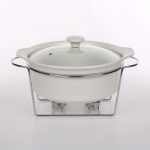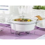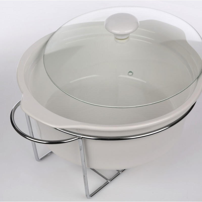 Jela poslužena na stolu koja se ne hlade? Da, to je sada moguće s linijom porculanske posude na grijaču. Posuđe Altom Design je izvrstan način učinkovitog posluživanja jela. Zahvaljujući pečenju jela s grijačima, možemo duže održavati pravu temperaturu, ukus i aromu pripremljenih jela, a istovremeno očarati goste učinkovitim posluživanjem. Linija porculanskog posuđa na grijaču kombinacija je elegancije i upotrebljivosti Oni će savršeno poslužiti ne samo za pripremu obiteljskih obroka , već i pomoći u učinkovitom posluživanju jela tijekom raskošnih zabava Omogućuje vam pečenje jela na visokoj temperaturi u pećnici i mikrovalnoj pećnici Univerzalna, bijela boja posuđa čini da se savršeno kombiniraju s bilo kojim posuđem Stabilni stalak izrađen od kromiranog čelika omogućuje vam posluživanje vruće hrane ravno iz pećnice do stola Otvor za paru smanjuje tlak u posudi. Glatku površinu od keramike lako održavamo čistom, posuđe se može prati u perilicama posuđa Dimenzije posude:širina: 25,5 cm,dužina: 27 cm,visina: 15,5 cm,kapacitet: 2,3 l