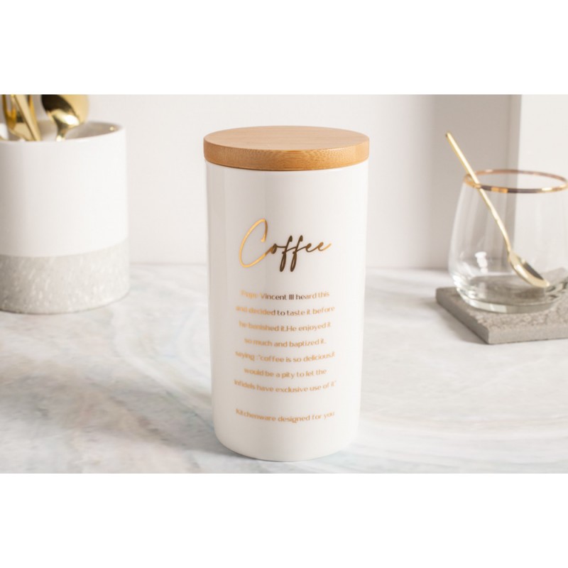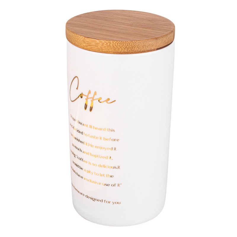 Altom Design porculanski spremnik s bambus poklopcem, bijeli sa zlatnim natpisom Coffee – 02010182