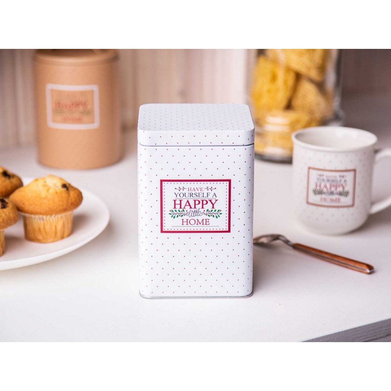 Limenka / posuda za kavu, čaj, šećer, rasute proizvode s četvrtastim poklopcem Altom Design Victoria Home bijela Metalne limenke s poklopcima praktični su i dizajnerski način za pohranu kave, čaja, šećera i ostalih rasutih proizvoda. Dimenzije limenke: dužina – 10,5 cmširina – 10,5 cmvisina – 16 cm