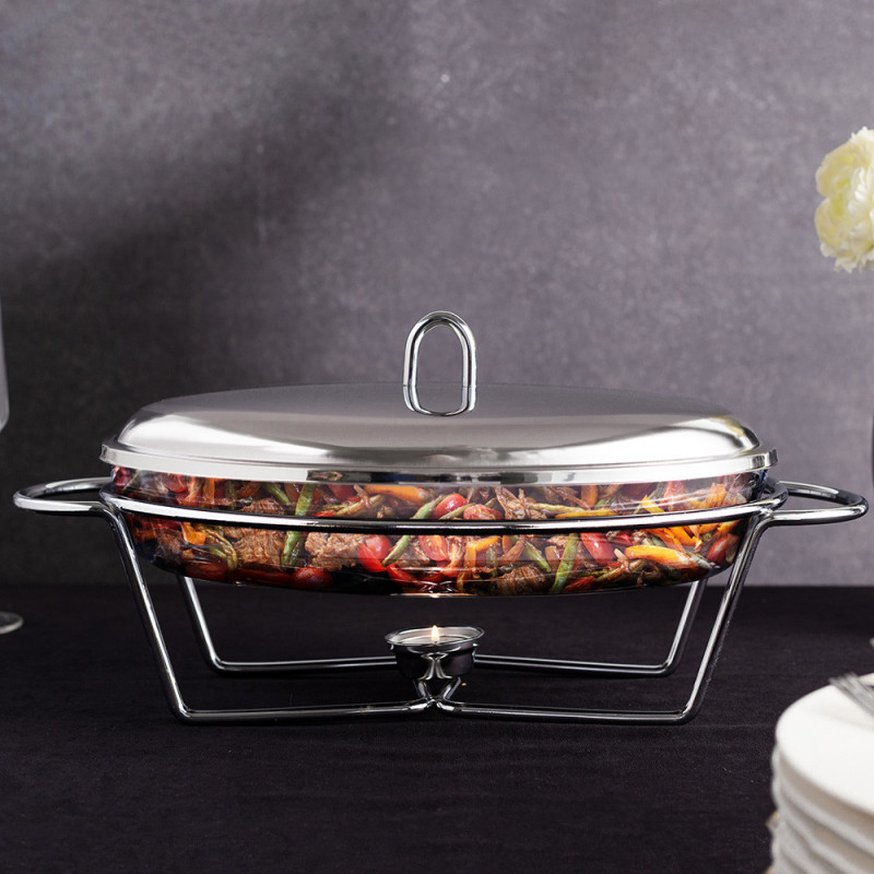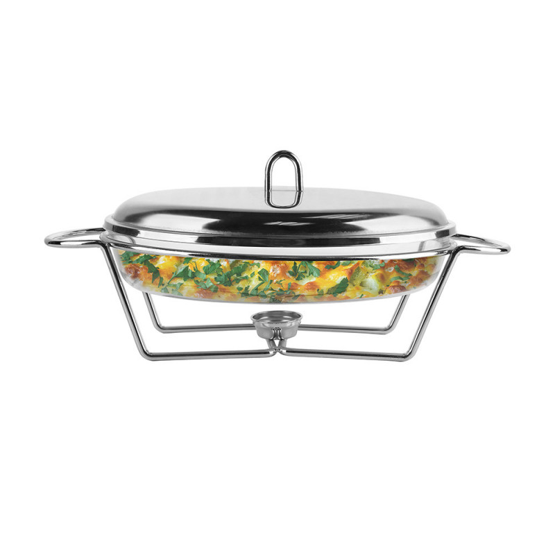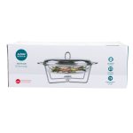 Jela poslužena na stolu koja se ne hlade? Da, sada je to moguće s linijom posuđa otpornih na toplinu na grijaču. Zahvaljujući posudama otpornim na toplinu na grijaču, možemo duže održavati pravu temperaturu, okus i aromu pripremljenih jela, a istovremeno očarati goste učinkovitim posluživanjem. kapacitet – 3,3 Ldužine – 44 cm širine – 25,5 cm visine – 16 cm Linija posuđa otpornih na toplinu na grijaču kombinacija je elegancije i upotrebljivosti Posuđe na grijaču savršeno je za posluživanje jela tijekom raskošnih zabava Praktična, staklena jela savršeno se stapaju s bilo kojim posuđem Stabilan stalak od kromiranog čelika ima prostora za postavljanje svijeća Zahvaljujući grijačima, poslužena jela dugo će ostati topla Glatka staklena površina može se lako održavati čistom, posuda se može oprati u perilicama posuđa (osim postolja)