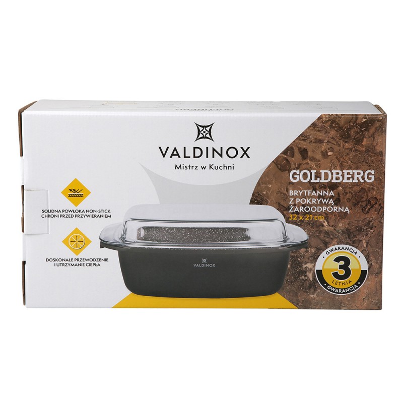 Čvrsto i izdržljivo kuhinjsko posuđe VALDINOX jamči zadovoljstvo tijekom kuhanja. Prženje ima dodatnu snagu zahvaljujući modernoj tehnologiji. Višeslojni švicarski ILAG Basic premaz učinkovito sprječava lijepljenje i zagaranje posuđa i olakšava pranje posuđa. Aluminijsko kućište i ručke omogućuju stavljanje cijelog posuđa u pećnicu i zagrijavanje na visoke temperature, čak i do 230 ° C. Kapacitetni poklopac s udobnim ručkama, može se koristiti i kao zasebni spremnik.