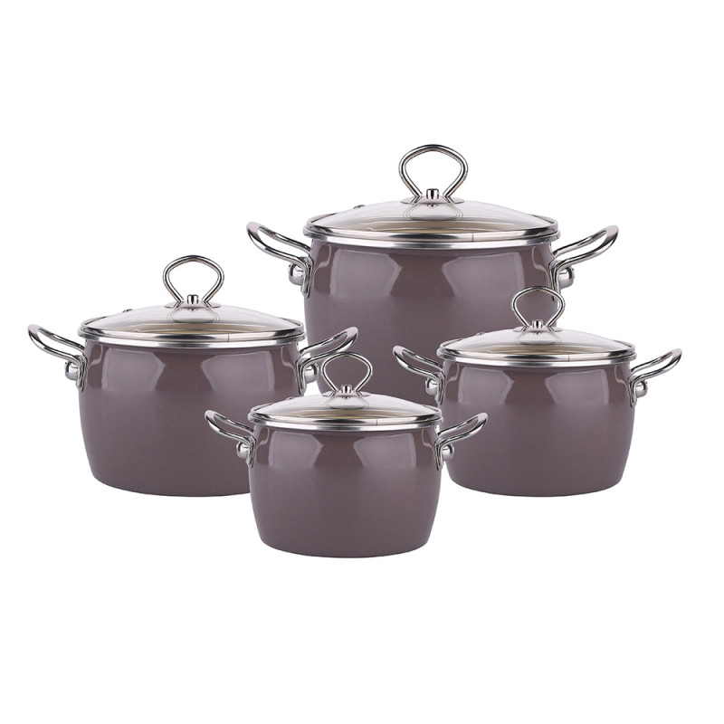 Ako ste ljubitelj lonaca i imate modernu kuhinju, a tradicionalne posude za emajliranje ne pristaju baš najbolje vašoj kuhinji, svakako odaberite Silesia Rybnik Balbina Soft Blue set emajliranih posuda 8 elemenata. Emajlirani set lonaca jedne od najboljih tvrtki Šleska Rybnik bit će koristan u svakoj kuhinji.. stakleni poklopac, koji ima ručku koja se ne zagrijava, izrađen je od komponenata otpornih na oštećenja, lijepa boja nježne plave boje s učinkom vodene površine, debelo dno i zidovi. Prekrasan set lonaca za emajliranje koji preporučujemo apsolutni je must have u svakoj kuhinji. Set lonaca osigurava brzu i jednostavnu pripremu mnogih jela, bez gubitka okusa, arome i nutritivne vrijednosti. Uski premaz cakline je higijenska otopina i lako se čisti. Set lonaca uključuje: · 1 x lonac s poklopcem 16 cm, visina – 11,5 cm, kapacitet – 2,3 l · 1 x lonac s poklopcem 18 cm, visina – 13 cm, kapacitet – 3,3 l · 1 x lonac s poklopcem 20 cm, visina – 14,5 cm, kapacitet – 4,3 l · 1 x lonac s poklopcem 22 cm, visina – 15,8 cm, kapacitet – 5,7 l