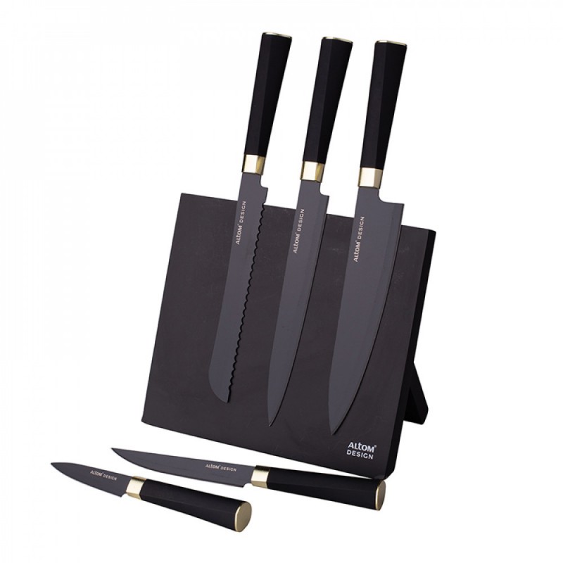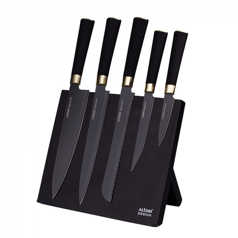 Altom Design set noževa na stalku, crno – zlatni – 0204013354
