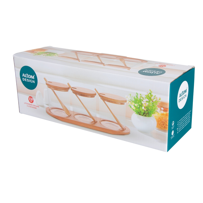 ALTOM DESIGN SET OD 3 BOROSILIKATNE POSUDE SA ŽLICAMA NA POSTOLJU 3X330 ML ( 0203018452 )