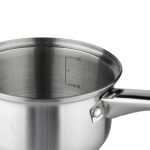 Vito set lonaca od nehrđajućeg čelika kombinira funkcionalnost s dizajnom. Za pripremu ukusnih jela ne trebaju vam vještine kuhara. Samo odaberite prava jela, a priprema ukusnih i punih vitaminskih obroka postat će dječja igra. Vito lonci To je kombinacija kvalitete, funkcionalnosti i stilskog dizajna · Lonci su izrađeni od nehrđajućeg čelika, zahvaljujući kojem ne podliježu izobličenju · Izdržljiv i higijenski nehrđajući čelik osigurava Jednostavno održavanje lonaca čistima · Saten izvana i iznutra – pruža Ekskluzivan izgled tijekom godina · Posebno slojevito Dno vrlo dobro provodi toplinu i omogućuje ravnomjernu raspodjelu po površini, smanjujući rizik od spaljivanja hrane. · Stakleni poklopac opremljen je izlaz za paru, Koji sprječava da hrana proključa · Unutar lonca Praktična matura s Litrageom · Možete ih koristiti na svim izvorima topline, a time i na indukcijskim štednjacima 1 x lonac s poklopcem: promjer – 16 cm, visina – 9,5 cm, kapacitet 1,9 l 1 x lonac s poklopcem: promjer – 18 cm, visina – 10,5 cm, kapacitet 2,6 l 1 x lonac s poklopcem: promjer – 20 cm, visina – 11,5 cm, kapacitet 3,6 l 1 x lonac s poklopcem: promjer – 22 cm, visina – 12,5 cm, kapacitet 4,7 l 1 x lonac s poklopcem: promjer – 14 cm, visina – 8,5 cm, volumen – 1,3 l 1 x univerzalni umetak za paru za posude 16/18/20 cm 2 x postolje za bakelite lonac – promjera 16 cm