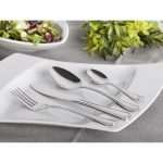 Pribor za jelo Leonardo – sjaj i trajnost čelika dugi niz godina. Sastav seta:6 x nož za večeru,6 x žlica za večeru,6 x vilica za večeru,6 x čajna žlica Napravljen od kvalitetnog čelika osigurava trajnost pribora za dugi niz godina. Klasična linija pribora za jelo u kombinaciji s nježnim, konveksnim uzorkom vrlo se dobro uklapa u klasični raspored stola. Pribor za jelo može se sigurno prati u perilici posuđa.