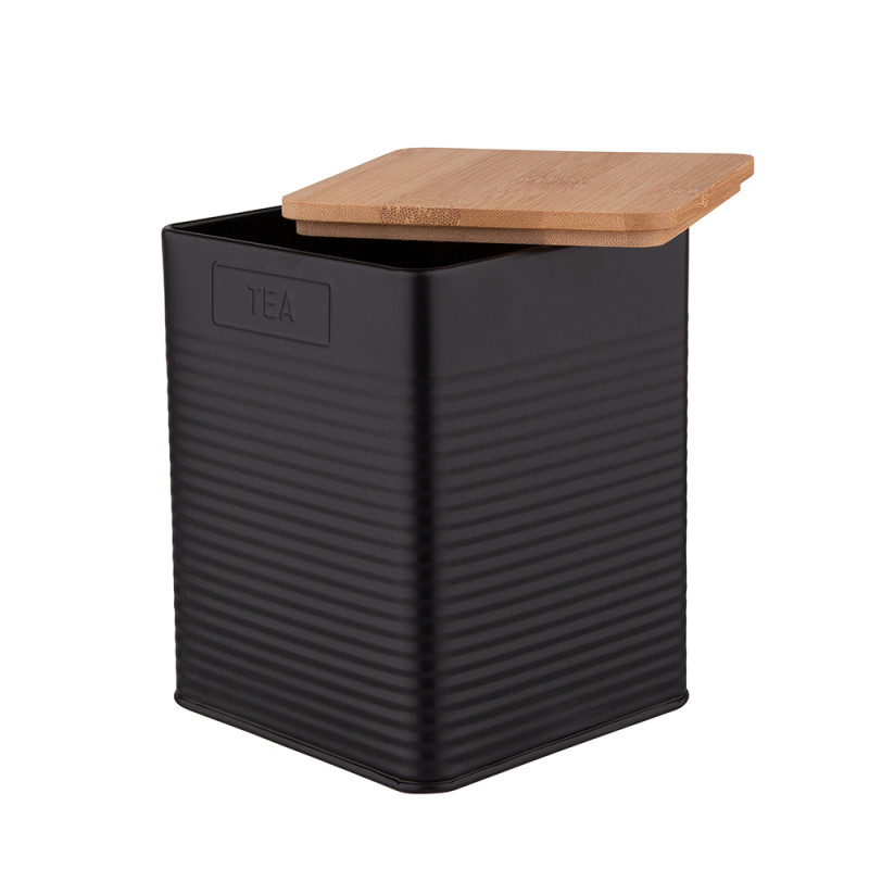 Dimenzije limenke: visina 14 cm širina 11 cm Limenka će dobro funkcionirati za skladištenje čaj, kao i drugih prehrambenih proizvoda. Bambusov pokrov štiti sadržaj.