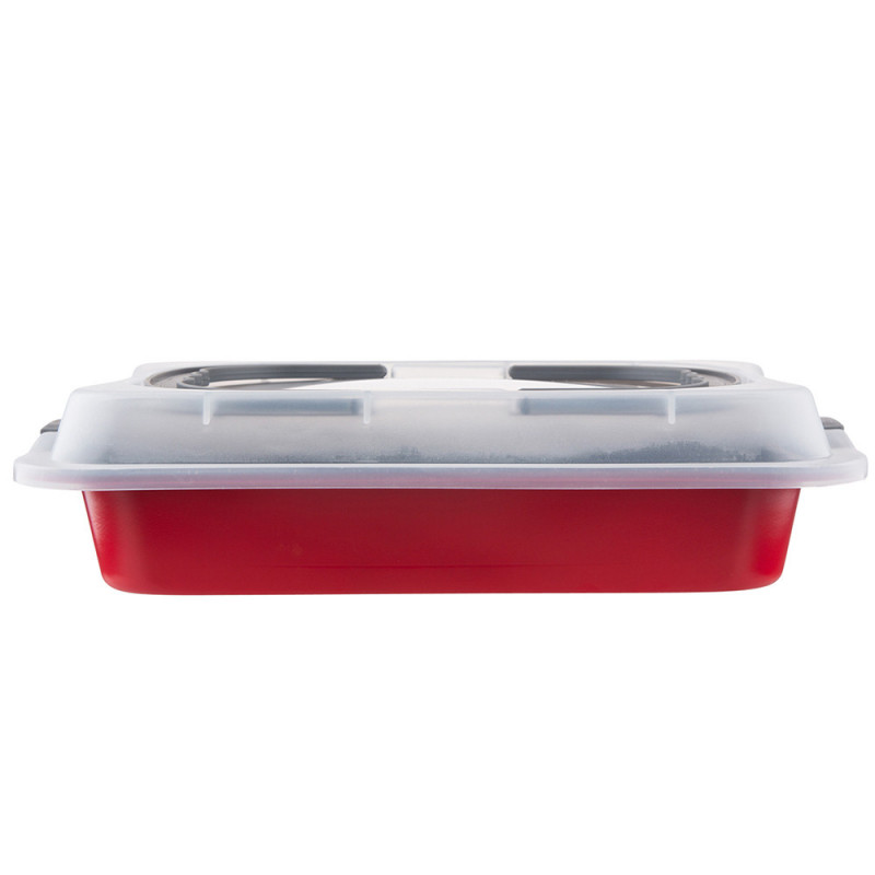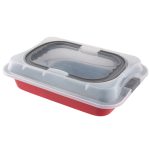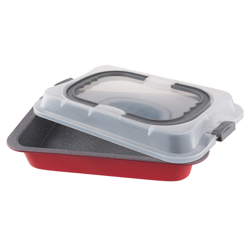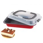 Altom Design neprijanjajući kalup za tortu / lim za pečenje s plastičnim poklopcem i ručkom od 36 cm crvene boje Praktični kalup za pečenje s poklopcem i ručkom Dimenzije kalupa:duljina 36,3 cm – širina 24,5 cm – visina 5,5 cm