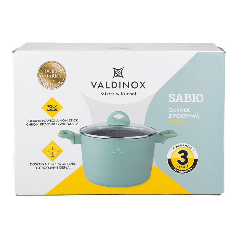 · Tijelo je izrađeno od lijevanog aluminija, zahvaljujući kojem savršeno provodi toplinu · Valdinox Sabio tave imaju debele zidove, zahvaljujući kojima Posuđe se brzo zagrijava i Držite toplinu dugo vremena · Valdinox Sabio posuđe osigurava ravnomjernu raspodjelu topline, koja sprječava deformaciju DNA · Unutarnji neprijanjajući premaz inspiriran izgledom i čvrstoćom kamena je siguran za zdravlje , jer ne sadrži teške metale i opasne kemikalije, hrana koju pripremate ne lijepi se za tavu i ne gori · Vanjska ljuska s mat teksturom Lako se čisti korištenje mekih krpa i malih količina blagih deterdženata. Ne preporučuje se za uporabu u perilicama posuđa · Ručke i ručke prekrivene su ugodnim i baršunastim silikonom na dodir “Soft touch”, koji štiti vaše ruke od opeklina · Valdinox Sabio posuđe možete koristiti na svim vrstama štednjaka, uključujući indukciju