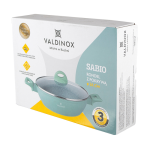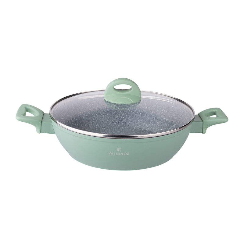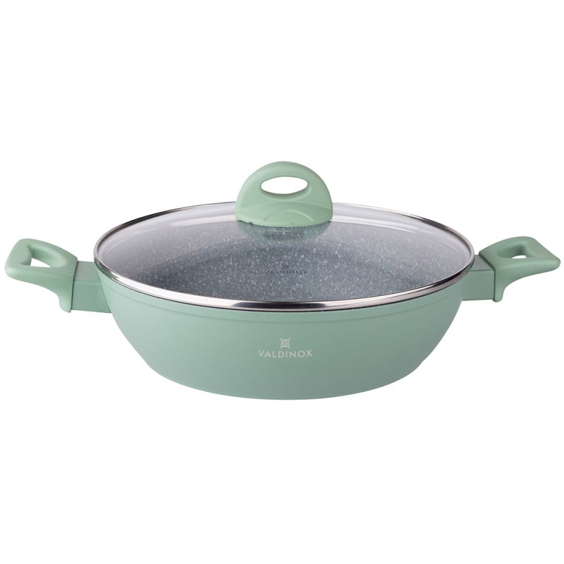 · Tijelo je izrađeno od lijevanog aluminija, zahvaljujući kojem savršeno provodi toplinu · Valdinox Sabio tave imaju debele zidove, zahvaljujući kojima Posuđe se brzo zagrijava i Držite toplinu dugo vremena · Valdinox Sabio posuđe osigurava ravnomjernu raspodjelu topline, koja sprječava deformaciju DNA · Unutarnji neprijanjajući premaz inspiriran izgledom i čvrstoćom kamena je siguran za zdravlje , jer ne sadrži teške metale i opasne kemikalije, hrana koju pripremate ne lijepi se za tavu i ne gori · Vanjska ljuska s mat teksturom Lako se čisti korištenje mekih krpa i malih količina blagih deterdženata. Ne preporučuje se za uporabu u perilicama posuđa · Ručke i ručke prekrivene su ugodnim i baršunastim silikonom na dodir “Soft touch”, koji štiti vaše ruke od opeklina · Valdinox Sabio posuđe možete koristiti na svim vrstama štednjaka, uključujući indukciju