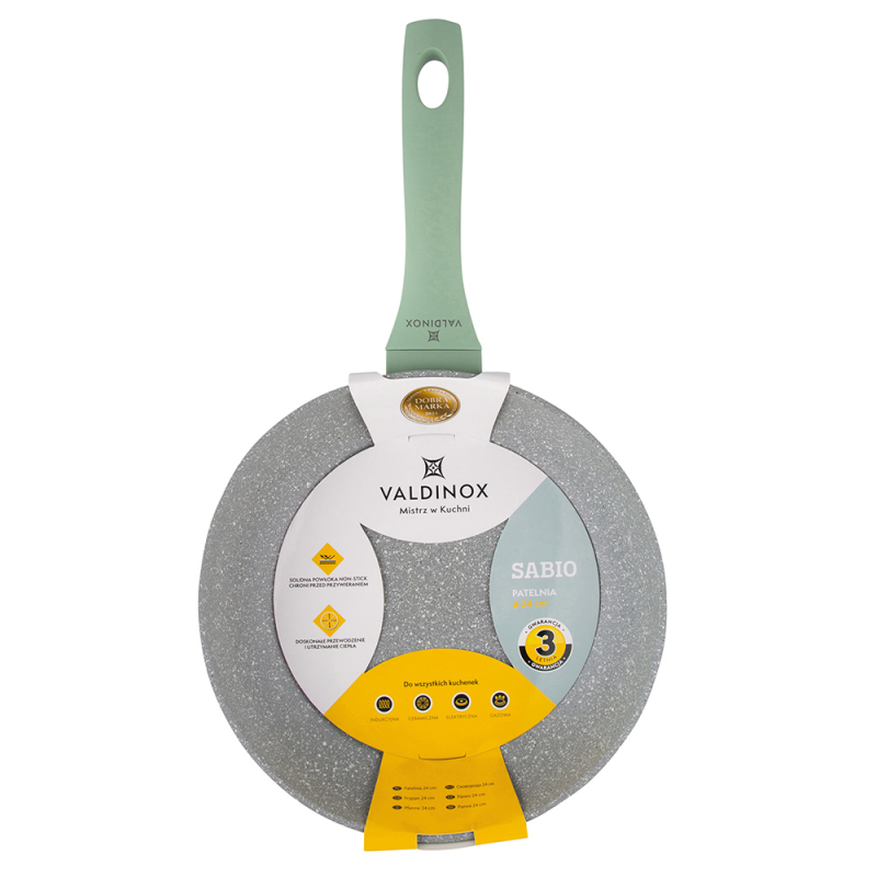 · Tijelo je izrađeno od lijevanog aluminija, zahvaljujući kojem savršeno provodi toplinu · Valdinox Sabio tave imaju debele zidove, zahvaljujući kojima Posuđe se brzo zagrijava i Držite toplinu dugo vremena · Valdinox Sabio posuđe osigurava ravnomjernu raspodjelu topline, koja sprječava deformaciju DNA · Unutarnji neprijanjajući premaz inspiriran izgledom i čvrstoćom kamena je siguran za zdravlje , jer ne sadrži teške metale i opasne kemikalije, hrana koju pripremate ne lijepi se za tavu i ne gori · Vanjska ljuska s mat teksturom Lako se čisti korištenje mekih krpa i malih količina blagih deterdženata. Ne preporučuje se za uporabu u perilicama posuđa · Ručke i ručke prekrivene su ugodnim i baršunastim silikonom na dodir “Soft touch”, koji štiti vaše ruke od opeklina · Valdinox Sabio posuđe možete koristiti na svim vrstama štednjaka, uključujući indukciju