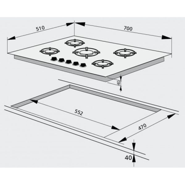 Staklokeramička ploča sa kontrolama na dodir;4 zone za kuhanje;Integrirani senzor upravljačke ploče; Timer; Alarm;Indikator zaostale topline zone za kuhanje;Sistem za automatsko vrenje; Zaključavanje ploče;Ploča:električna isijavajuća zona 14.5 cm (1.2kW)električna isijavajuća zona 14.5 cm (1.2kW)dvostruka električna isijavajuća zona 12/21 cm (0.75/2.2kW)ovalna električna isijavajuća zona 17/17 x 26.5 cm (1.4/2.2kW)Dimenzije (cm): 56 x 49 ; Z okvir