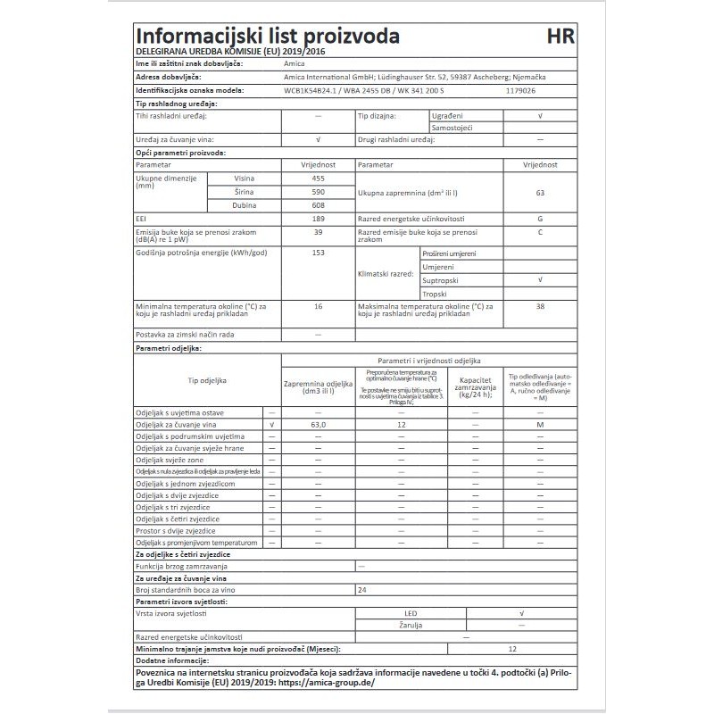 Amica vinski hladnjak WCB1K54B24.1 ( 1179026 )