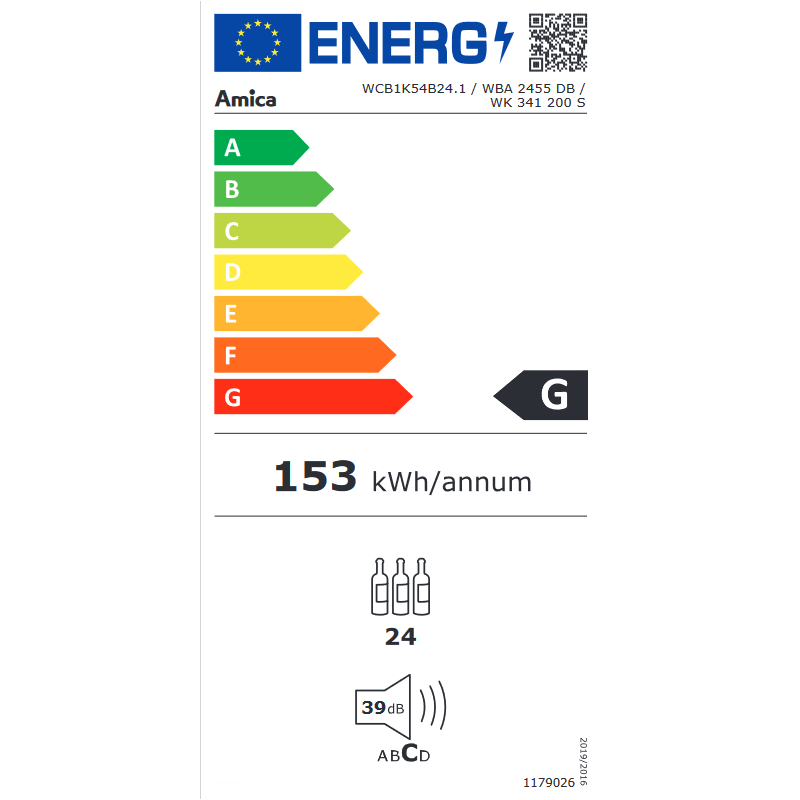 24 boca / 63 lit Crna vrata Ugradbeni u element Reverzibilna vrata UV filler,LED rasvjeta 1 zone, drvene police Temperatura: 5-20 °C Ener.klasa: A, ST klimatska kl. Potrošnja: 140 kWh/god Dimenzije (cm): 45,5(v) x 59,5(š) x 60(d) Nivo buke: 39dB