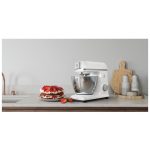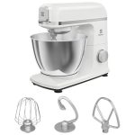 Electrolux kuhinjski aparat snage 1200 W, bijele boje. Kapacitet posude 5 l s poklopcem od nehrđajućeg čelika. Uključena tri nastavka: nastavak za miješanje krema, tijesta i mutilica.