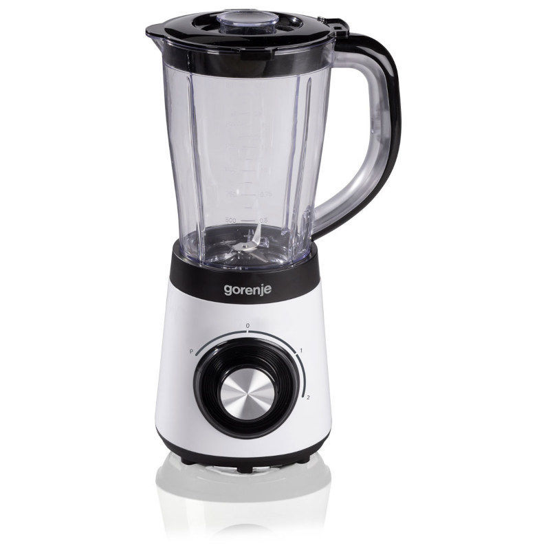 Gorenje blender / mikser, priključne snage 500 W, bijele boje. Gumb za uključivanje/isključivanje i gumb za regulaciju brzine, vrč volumena 1.5 l, oštrice visokokvalitetne SUS 303.