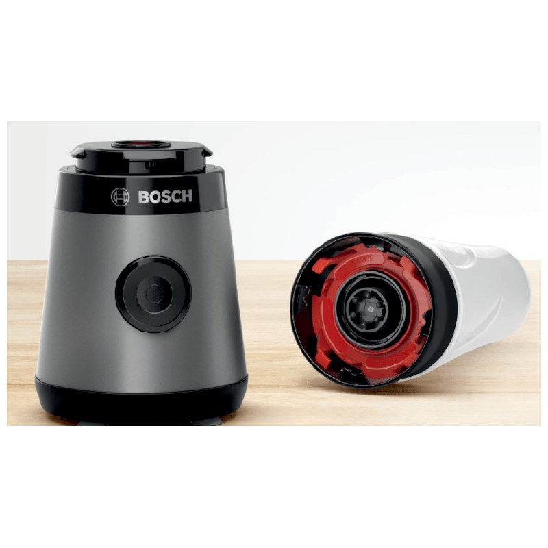 Bosch kompaktan i snažan mini mikser s nepropusnom bocom Tritan To-Go i kućištem od nehrđajućeg čelika. Uživajte u zdravim napitcima smoothie bez komadića zahvaljujući miješanju na visokim brzinama. Sustav ProPerformance: optimalna tekstura i savršeno svjež okus smoothija, čak i sa zamrznutim voćem i tvrdim sastojcima. Visoka sposobnost Bosch motora: snažno mini blender snage 450 W i brzinom motora do 40 000 o/min. Oštrice ProEdge: odlični rezultati s učinkovitim i otpornim oštricama od nehrđajućeg čelika iz Njemačke. Kvaliteta iz europske Bosch tvornice: dugotrajna otpornost, pouzdan dizajn i visokokvalitetni materijali. Miješajte izravno u boci ToGo sa zaštitom protiv propuštanja: uživajte u smoothijima u pokretu na jednostavan i bezbrižan način.