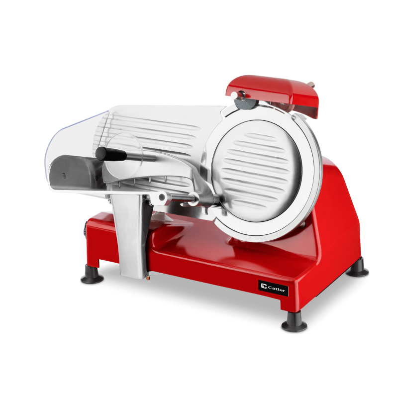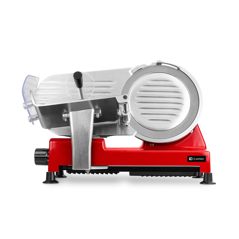 Catler profesionalna mesoreznica FS 9020 Profesionalni rezač hrane FS 9020 u ekskluzivnom talijanskom dizajnu prikladan je ne samo za kućanstva, već i za gastronomiju ili ugostiteljske usluge. Čvrsto metalno tijelo i podesive protuklizne noge osiguravaju ekstremnu stabilnost čak i pri rezanju tvrđih namirnica. Nije važno da li spremate ručak ili pripremate zabavu za 30 ljudi. Izuzetno stabilna reznica s parametrima profesije lako će upravljati kućnim i ugostiteljskim aplikacijama. Čvrsto metalno tijelo skriva motor od 240 W koji pruža kontinuiranu snagu vrlo oštrom reznom disku od nehrđajućeg čelika. Lagano nasjeckajte mekani sir ili tvrdu salamu. ·         Precizno podešavanje širine rezanja od rezanja tankih rezina ·         Za sušene šunke, salame, tvrde sireve i meku  hranu uključujući pečenu hranu ·         Napon: 220 V – 240 V / 50 Hz / 60 Hz ·         Ulaz snage: 240 W ·         Korišteni materijali: plemenita metalna legura, nehrđajući čelik, vrlo izdržljiva plastika ·         Garancija 36 mjeseci, uz prijavu 60 mjeseci