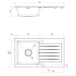 Komplet granitnog sudopera i slavine u crnoj boji (grafit) unosi dašak elegancije u svaku kuhinju zahvaljujući svom atraktivnom izgledu SUDOPER: način montaže: klasičan dimenzije (D x Š x D): 76 x 44 x 16 cm veličina elementa: 60 cm promjer odvoda: 3,5” izvedba: reverzibilno (okretna) uključeno: sifon – skočni ekscentar (odvod se otvara i zatvara uz pomoć gumba)  SLAVINA: oblik: s jednom ručkom materijal: u boji način montaže: stojeći visina: 35,5 cm duljina do odvoda: 17,3 cm klasa protoka: Z – 9 l/min razina buke (dB): I – ispod 20 Jamstvo:  10 godina