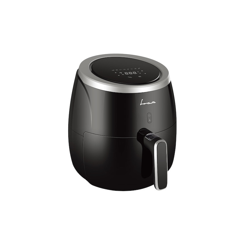 Specifikacije Digitalni zaslon Kontrola dodira Kapacitet košarice: 5 Litara Uklonjiva antiljepljiva posuda Podesiva temperatura: 80-200°C Tajmer: max 60min Zaštita od pregrijavanja Snaga: 2000W Boja : Crna