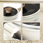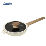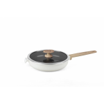 ALUMINIJSKA TAVA+POKLOPAC 20×4,5 CM Materijal: lijevani aluminij + ručke i manžete s imitacijom drva + stakleni poklopac otporan na toplinu Interijer: PFLUON keramički premaz Eksterijer: rebrasti keramički premaz otporan na visoke temperature Pakiranje: kutija u boji INDUKCIJA