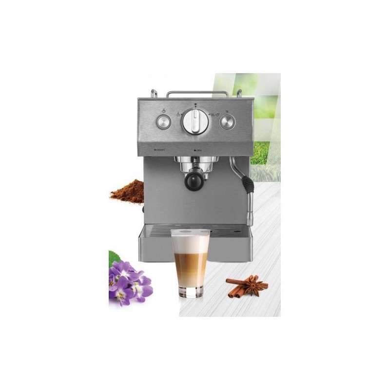 Glavne karakteristike 20 bar tlačna pumpa Ploča za toplo čuvanje 1.5L odvojivi spremnik za vodu Karakteristike Dvostruki filter od nehrđajućeg čelika Opcije: mlijeko za espresso i pjenasto mlijeko Zaštita od pregrijavanja Sigurnosni ventil nadtlaka Uklonjiva ladica za kapljanje Kućište od nehrđajućeg čelika   Tehnički podaci Snaga: 960-1140W Napon: 220-240V ~ 50Hz Za espresso aparate preporuka je koristiti srednje fino mljevenu kavu !   Fino ili ekstra fino mljevena kava može začepiti čeličnu mrežicu od aparata.