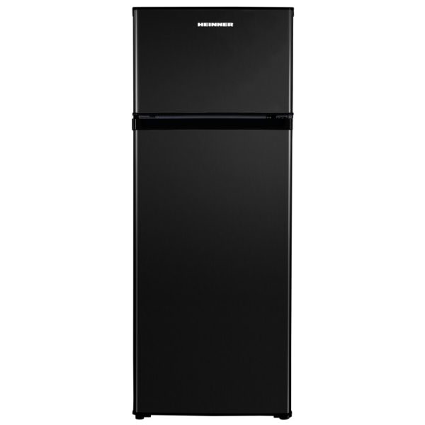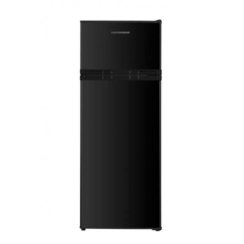 Heinner hladnjak HF-H2206BKE++ hladnjak s 2 vrata, energetski razred: E, ukupni kapacitet: 206L, kapacitet hladnjaka: 169L, kapacitet zamrzivača: 37L, mehaničko upravljanje s podesivim termostatom, LED svjetlo, 3 staklene police hladnjaka, odjeljak za voće i povrće, reverzibilna vrata, držač jaja, kapacitet smrzavanja: 2,4 kg / 24h, dimenzije (ŠxDxV): 54,5 x 55,5 x 143 cm, boja: Crna