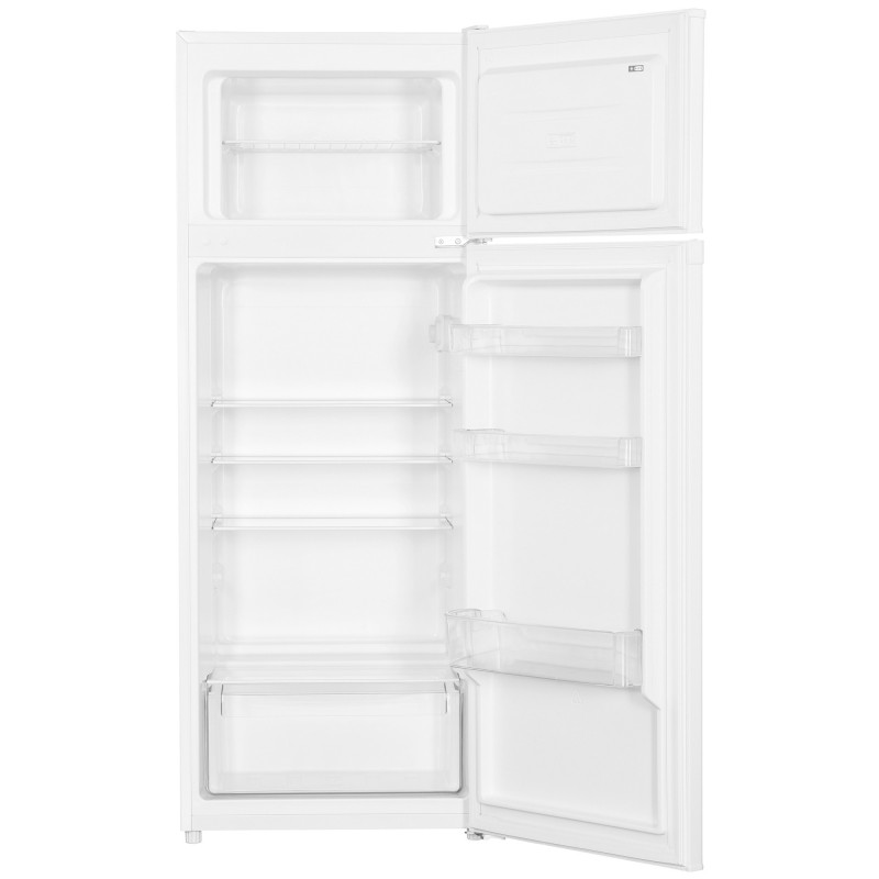 Hladnjak Heinner HF-H2206F+ Klasa energetske učinkovitosti: F, Ukupni kapacitet: 206L, Kapacitet hladnjaka: 169L, Kapacitet zamrzivača: 37L, Mehaničko upravljanje s podesivim termostatom, LED svjetlo, 3 staklene police hladnjaka, 1 odjeljak za voće i povrće, Reverzibilna vrata, Ladica za jaja, Kapacitet smrzavanja: 2,4 kg / 24h, Dimenzije (ŠxDxV): 54,5 x 55,5 x 143 cm, Boja: Bijela