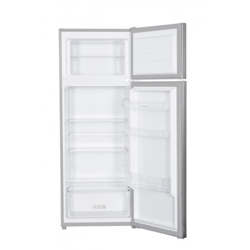 Heinner HF-H2206SF+ hladnjak s dvoje vrata, energetski razred: F, ukupni kapacitet: 206L, kapacitet hladnjaka: 169L, kapacitet zamrzivača: 37L, mehaničko upravljanje s podesivim termostatom, LED svjetlo, 3 police staklo hladnjaka, odjeljak za voće i povrće, reverzibilna vrata, držač jaja, kapacitet smrzavanja: 2,4 kg / 24h, dimenzije (ŠxDxV): 54,5 x 55,5 x 143 cm, boja: Srebro