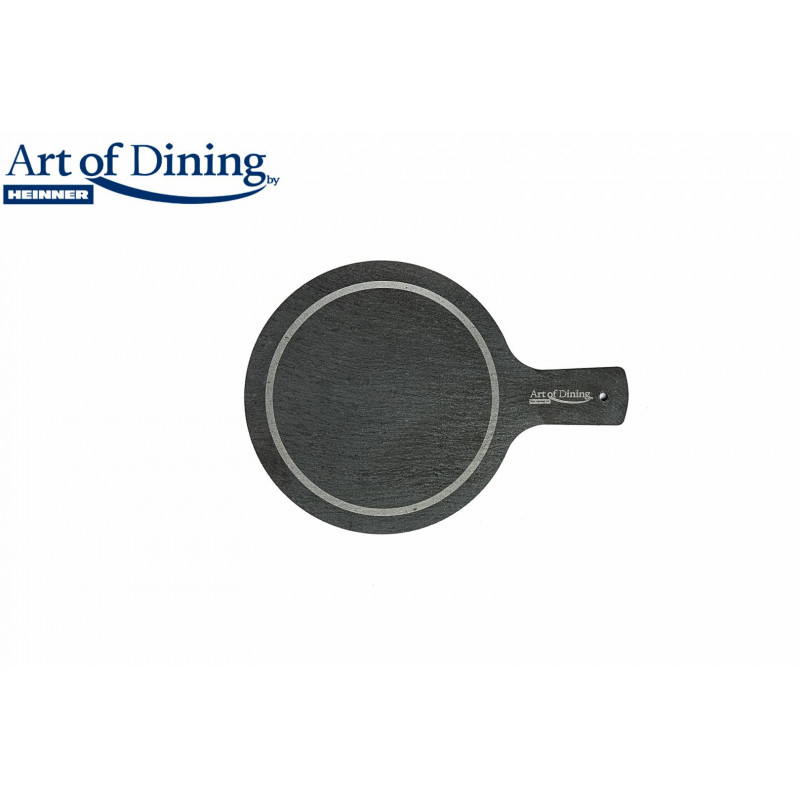 Komercijalni opis Okrugli pladanj od škriljevca s ručkomDimenzije: 28,4×19.8cm,Duljina ručke: 8.6cm;Debljina :4-7mmTežina: 640g.