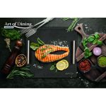 Kvadratni pladanj od škriljevca s dvije ručke od nehrđajućeg čelika Dimenzije: 30x30cm, Debljina: 4-7mm Težina: 1360g,