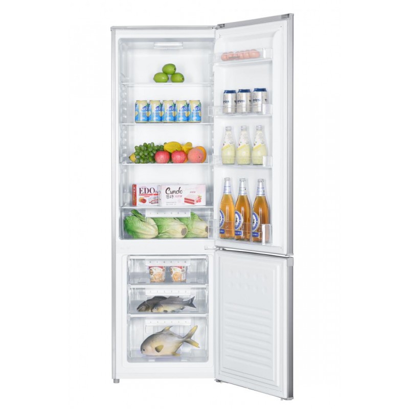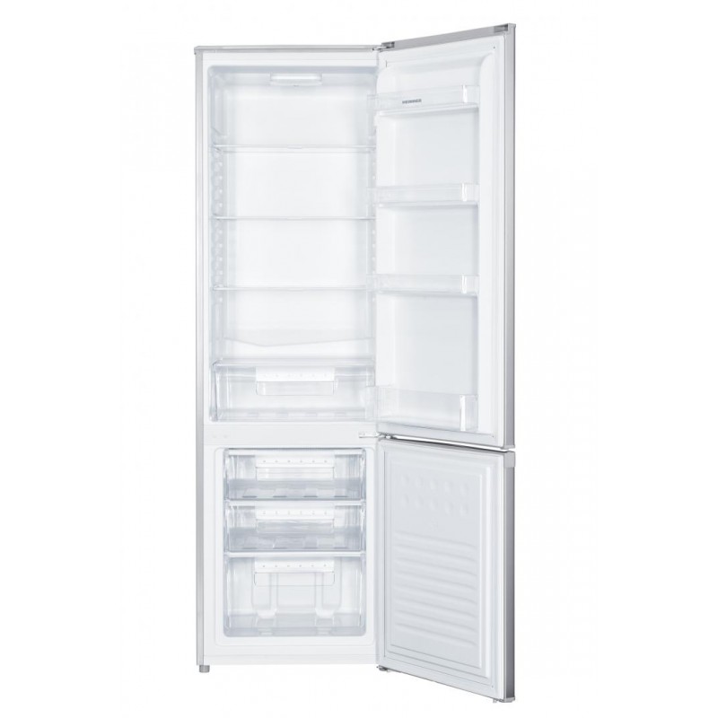 HEINNER kombinirani hladnjak HC-H273SF+, Energetski razred: F, Ukupni kapacitet: 269L, Kapacitet hladnjaka: 198L, Kapacitet zamrzivača: 71L, Mehanička kontrola s podesivim termostatom, LED svjetlo, 3 police od stakla hladnjaka, Odjeljak za voće i povrće, 3 ladice za zamrzavanje, Reverzibilna vrata, Držač jaja, Ladica za kockice leda, Kapacitet zamrzavanja: 3,2 kg / 24h, Dimenzije (WxDxH): 55 x 58 x 176 cm, boja: Srebro