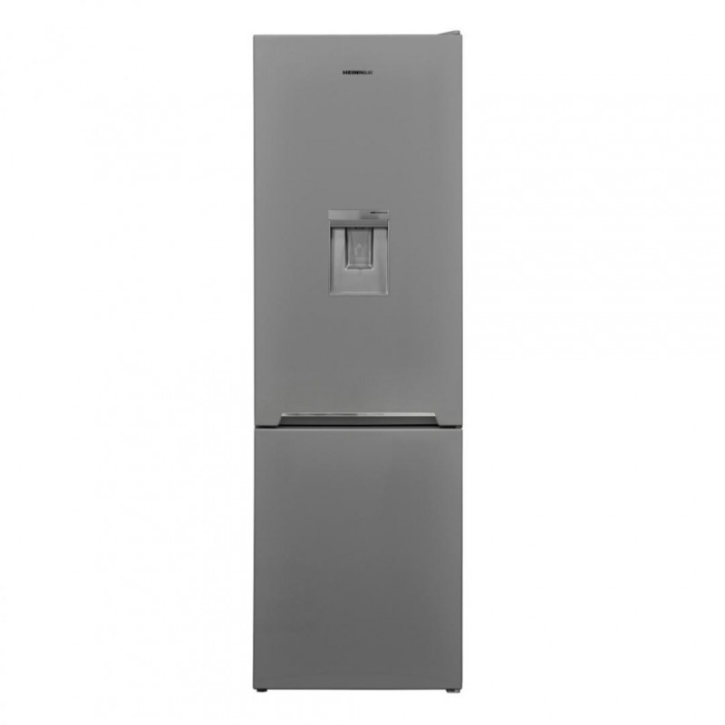 Heinner HC-V270SWDF+ kombinirani hladnjak, energetski razred: F, Sustav hlađenja manje mraza, ukupni kapacitet: 268L, kapacitet hladnjaka: 184, kapacitet zamrzivača: 84L, mehanička kontrola s podesivim termostatom, LED svjetlo, funkcija “Super smrzavanja”, 3 staklene police hladnjaka, 3 ladice zamrzivača, odjeljak za voće i povrće, dozator vode, dimenzije (ŠxDxV): 54 x 59,5 x 170 cm, srebro
