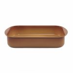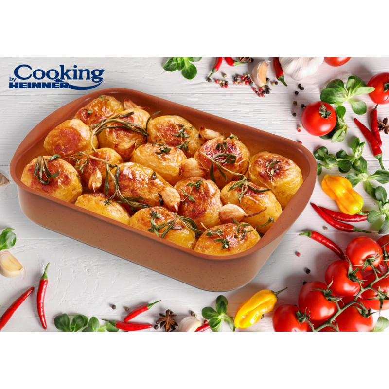 ALUMINIJSKA POSUDA ZA PEČENJE 35X25X7,2 CM Materijal: kovani aluminij + ručke od nehrđajućeg čelika Neljepljivi pjeskareni mramor Mramorna pjeskarena boja otporna na visoke temperature
