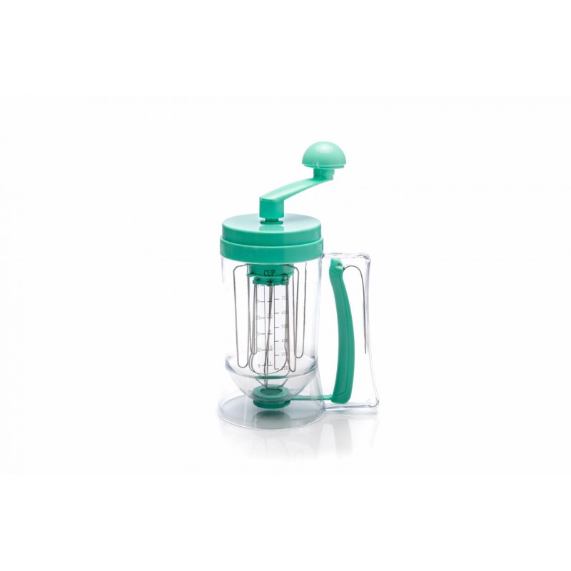 Materijal: plastika + nehrđajući čelik Veličina: 11 * 29 cm šalica 800 ml pjenjača od nehrđajućeg čelika ergonomska i odvojiva ručka – svaki put distribuira savršenu količinu Pripremite, promiješajte i podijelite – sve u jednom uređaju! Idealno za palačinke, vafle, vafle i muffine