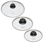 SET OD 3 STAKLENA POKLOPCA: 22 / 20 / 18 CM, VANORA HOME Materijal: staklo Bakelitna ručka Operite prije prve i nakon svake uporabe toplom vodom i tekućim deterdžentom. Također su prikladni za perilicu posuđa.