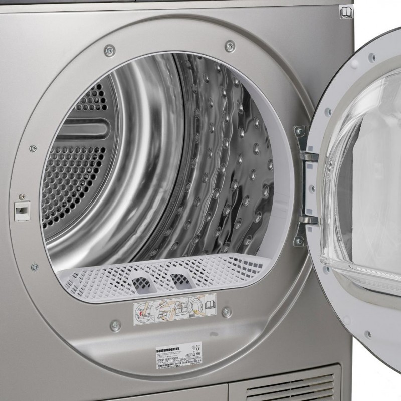 Sušilica rublja Heinner s toplinskom pumpom HHPD-V804SA++, energetski razred: A++, kapacitet punjenja: 8 kg, kromirana vrata okvira, kromirani gumb, posuda od nehrđajućeg čelika, vat svjetlo, srebro Specifikacije proizvoda Neto dimenzije Visina 84,5 cm Širina 59,6 cm Dubina 60,9 cm Težina 48,8 kg