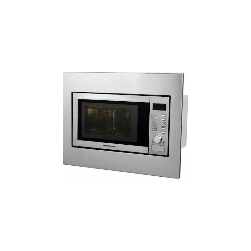 Ugradbena mikrovalna pećnica Heinner HMW-23BI, Kapacitet 23L, Digitalno upravljanje, LED zaslon, Snaga pećnice 800W, Snaga roštilja 1000W, 5 koraka snage, Tajmer, Maksimalno vrijeme kuhanja 60 min, Funkcija odmrzavanja, Zvučni signal na kraju programa, Dječja pristupna brava, Promjer rotirajuće ploče 270 mm, Dimenzije : 59,4×35,7×49,5 cm, Boja: Nehrđajući čelik