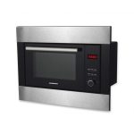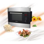 Ugradbena mikrovalna pećnica Heinner HMW-23BIXBK, kapacitet 23L, digitalno upravljanje, LED zaslon, snaga pećnice 800W, snaga roštilja 1000W, 5 koraka snage, 8 automatskih programa kuhanja, tajmer, maksimalno vrijeme kuhanja 60 min, funkcija odmrzavanja, zvučni signal na kraju programa, dječja pristupna brava, rotirajuća ploča promjera 270 mm, vertikalna vrata za otvaranje, dimenzije: 59,4×35,7×49,5 cm, Boja: Crno-nehrđajući čelik