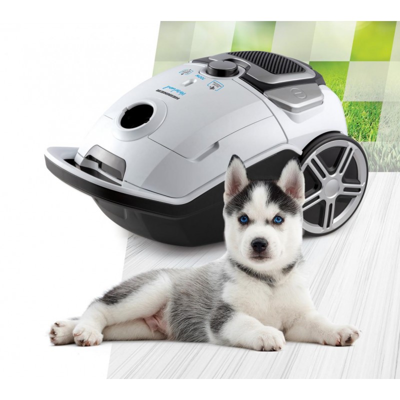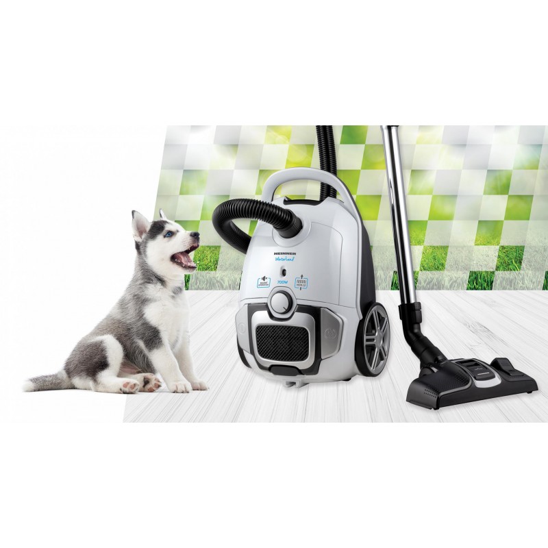 Usisavač  Heinner HVC-M700WH s vrećicom snaga: 700W, apsorpcijska snaga: 150W tihi rad – 69dB HEPA filter 12 tekstilna vreća: 3L metalna teleskopska cijev indikator pune vrećice prostor za odlaganje pribora boja : bijela