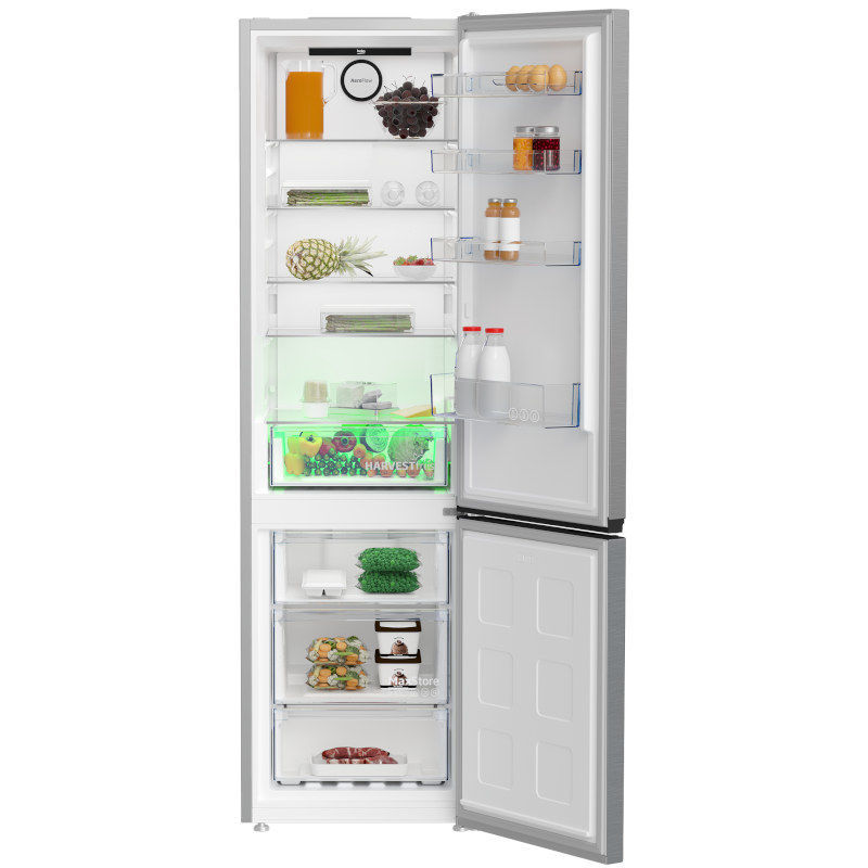 Beko hladnjak kombinirani zapremnine: 355 l (hladnjak 249 l, zamrzivač 106 l). No-Frost rashladni sustav. Dimenzije (VxŠxD): 203,5 x 59,5 x 66,3 cm, težine: 76,1 kg. Vrlo tih: 37 dBA. Energetski razred: E.
