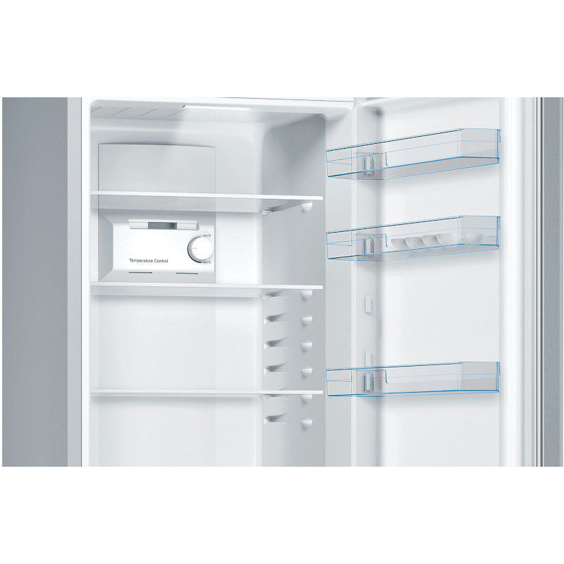 Samostojeći hladnjak sa zamrzivačem na dnu, neto kapaciteta 302 l, izgled nehrđajućeg čelika. Dimenzije uređaja: 186 x 60 cm. Energetski razred E. NoFrost hladnjak s ledenicom dolje i ladicom MultiBox: savršena za pohranu voća i i povrća. PerfectFit: Uređaj se može postaviti pokraj bočnih zidova i pokućstva. LED osvjetljenje: jednakomjerno osvijetli hladnjak za vrijeme cijelog životnog vijeka uređaja.